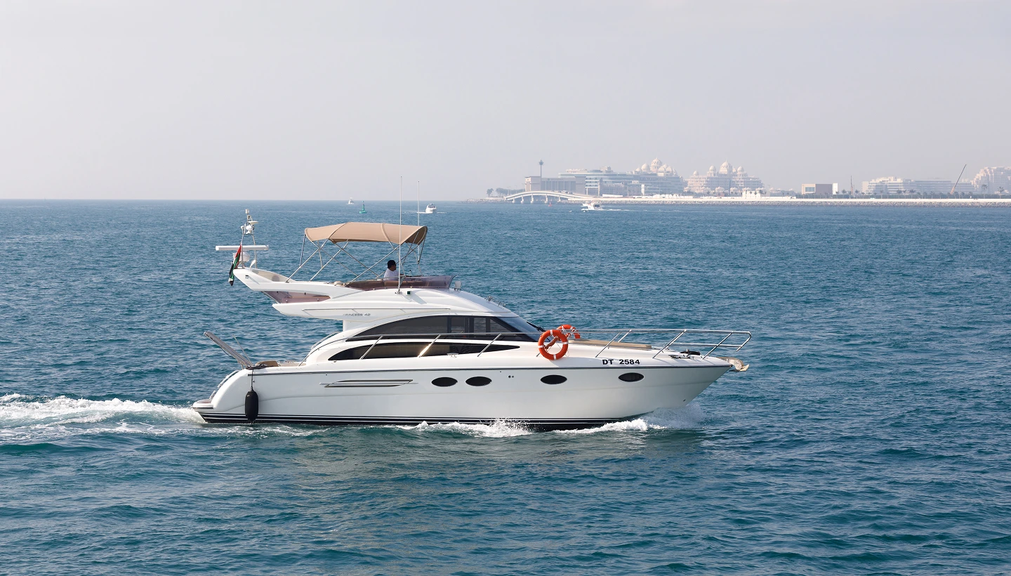 Step aboard and discover Kuwait’s captivating contrast of modern skylines and serene island escapes. Cruise past the iconic Kuwait Towers, anchor at Failaka Island to explore heritage sites, or spend the day swimming in Kubbar’s turquoise lagoons. Our luxury yacht charter in Kuwait blends elegance, culture, and adventure—delivered with total peace of mind.