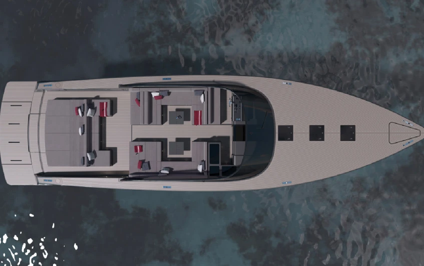 The newly updated interiors of the VanDutch75 are the work of BurdissoCapponi Yachts&Design, which brings a fresh approach marked by refined materials, bold contrasts, and sophisticated textures. Their design introduces a softer visual language while preserving the clean lines that define the VanDutch aesthetic.