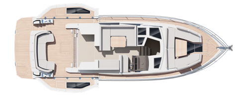 The Galeon 480 FLY is designed for those who want to embrace every moment at sea. On the flybridge, a spacious U-shaped sofa becomes the centre of social life, while the companion seat beside the helm lets you share the excitement of cruising with panoramic views all around. Just a few steps away, the integrated barbecue turns casual dining into unforgettable experiences, framed by the beauty of the ocean.