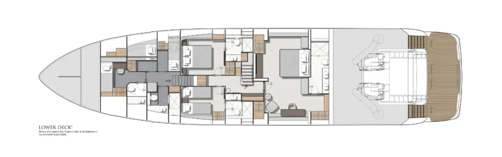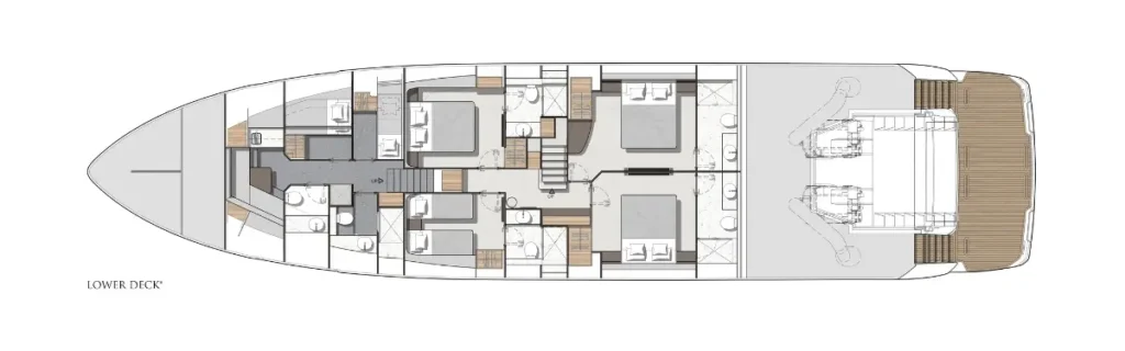 Generous open-plan living areas, private cabins, and panoramic views set the 94 Yacht apart. Perfect for hosting family and friends, it stands out as a flagship for your fleet.